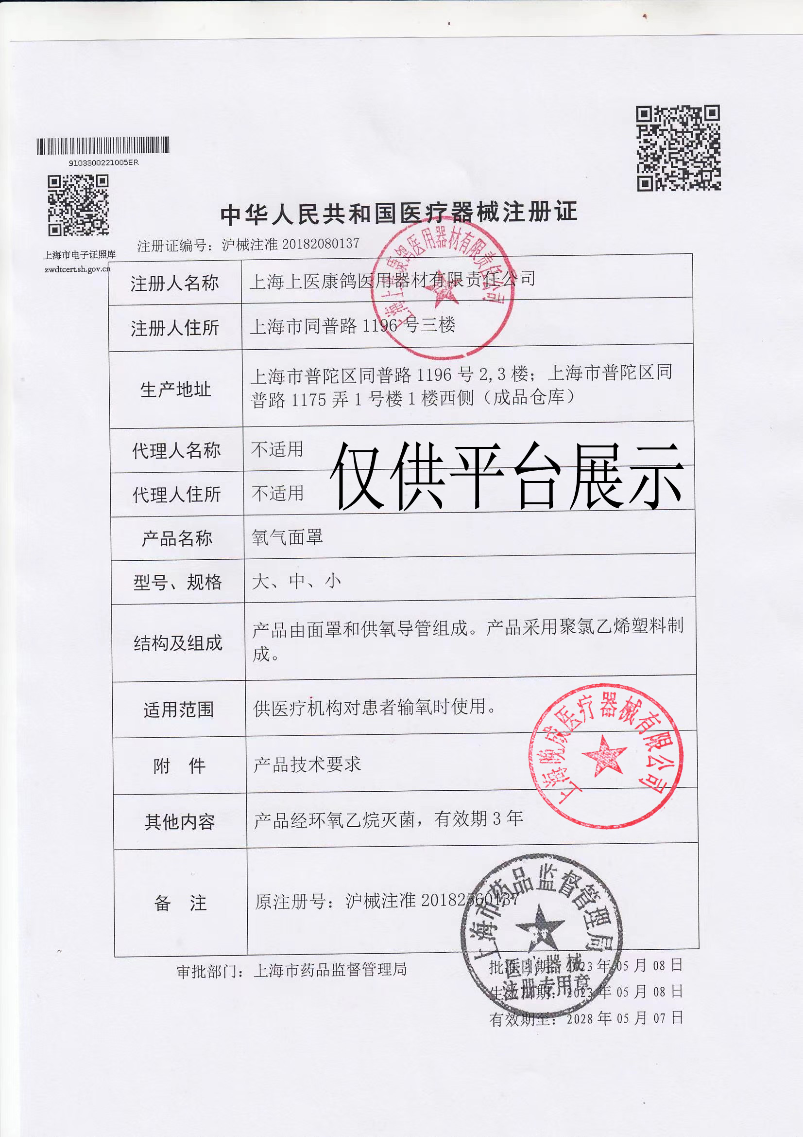 | 產(chǎn)品名稱 : | 康鴿氧氣面罩大號 |