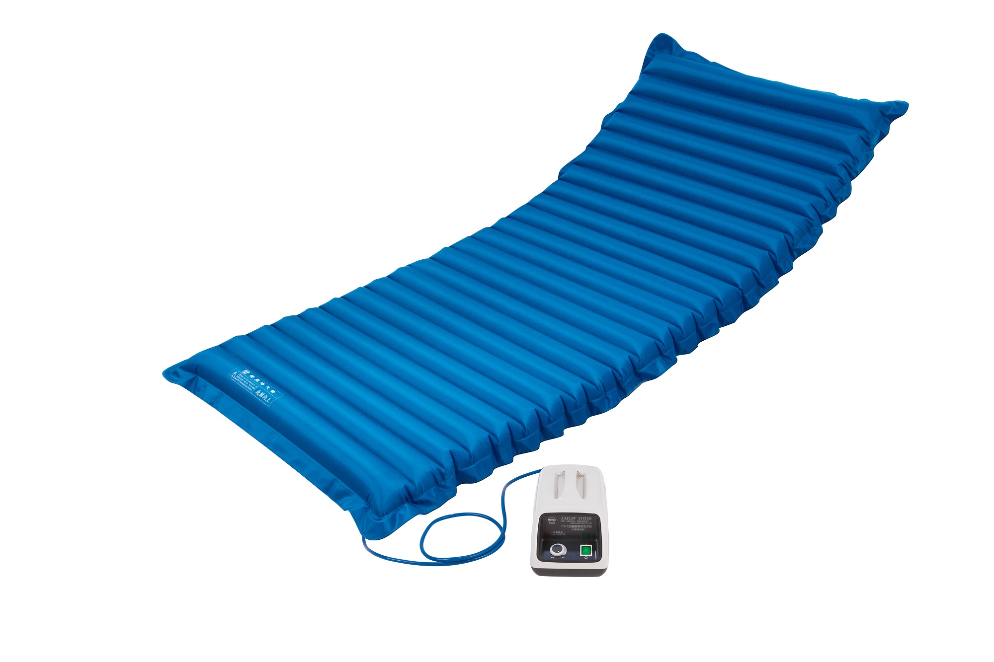 1.通過微孔噴出的干燥空氣能降低被褥中的濕度,置換污濁空氣,抑制細菌生長,結(jié)合氣床墊柔軟的支撐