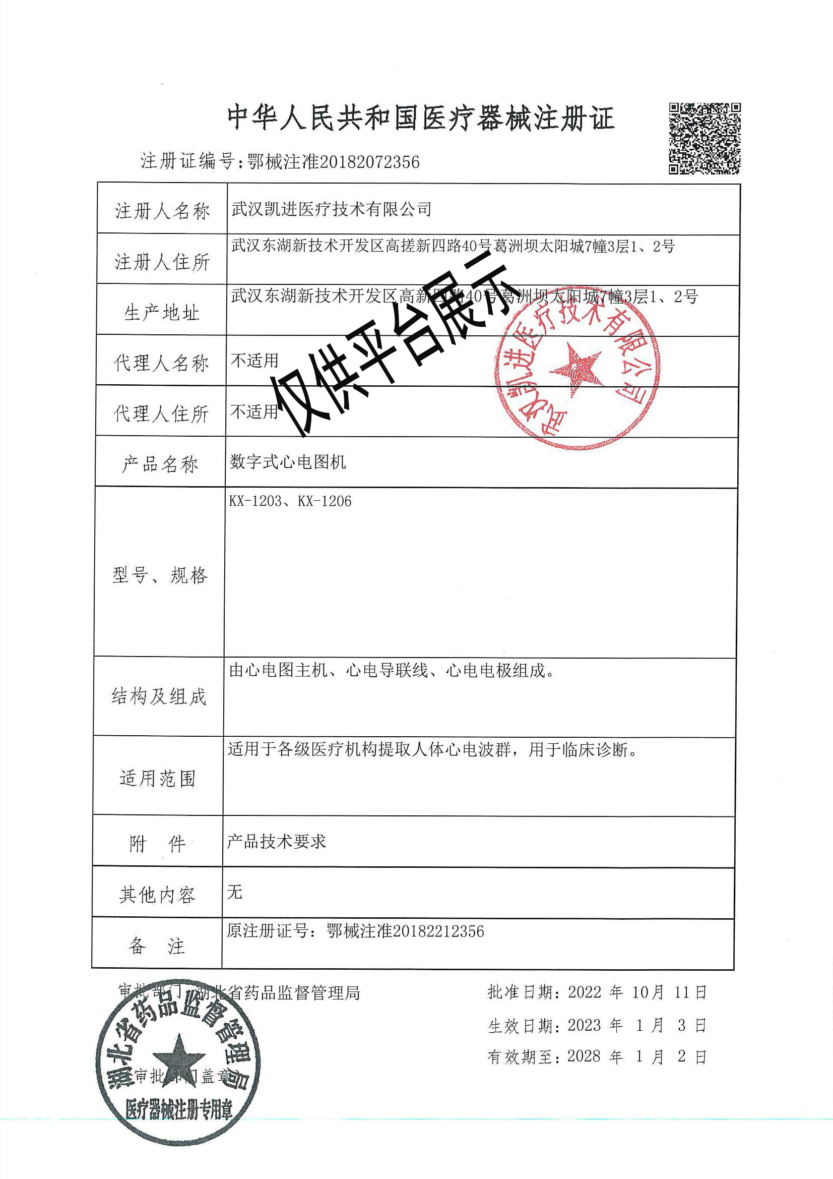 | 產(chǎn)品名稱 : | 凱進(jìn)便攜式數(shù)字式心電圖機(jī)KX1203 |