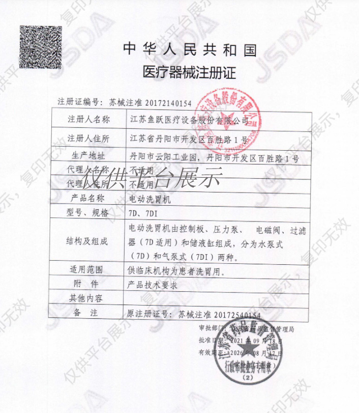 | 產(chǎn)品名稱 : | 魚躍7DI電動洗胃機(全自動) |