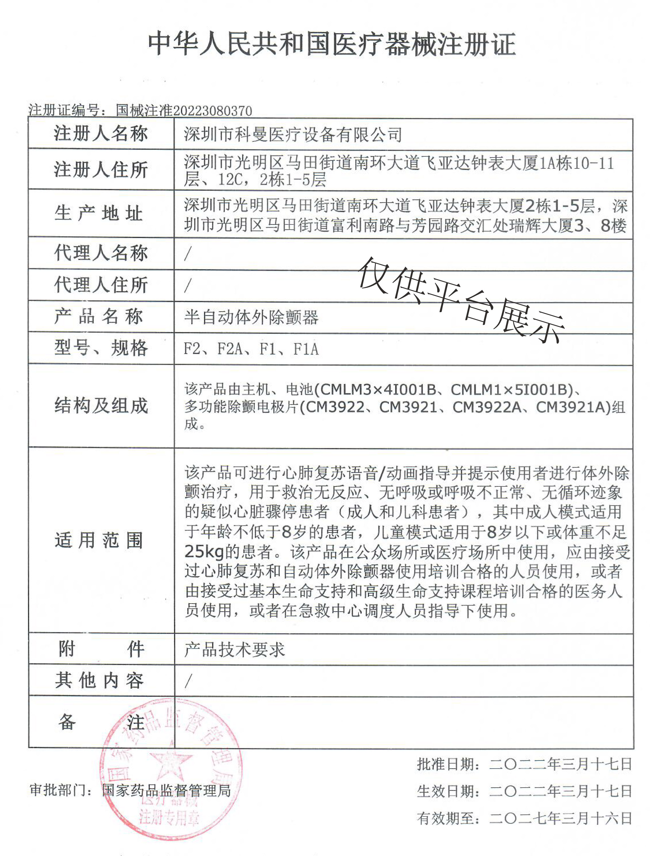 | 產(chǎn)品名稱 : | 科曼 半自動體外除顫器F1/F1A 除顫儀 |