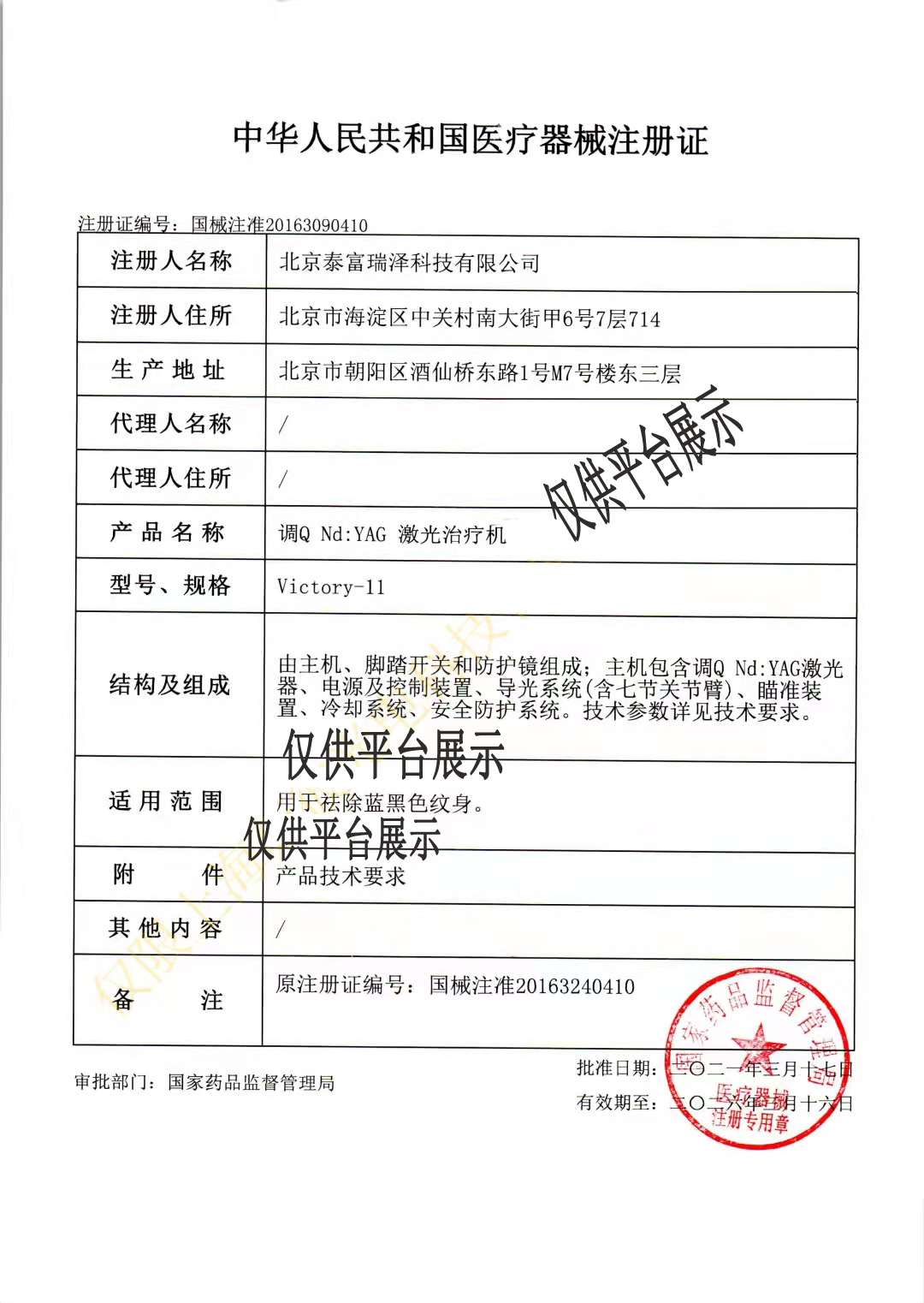 正品銷售 泰富 調(diào)Q Nd:YAG激光治療機(jī) Victory-11型,歡迎聯(lián)系訂購(gòu)。