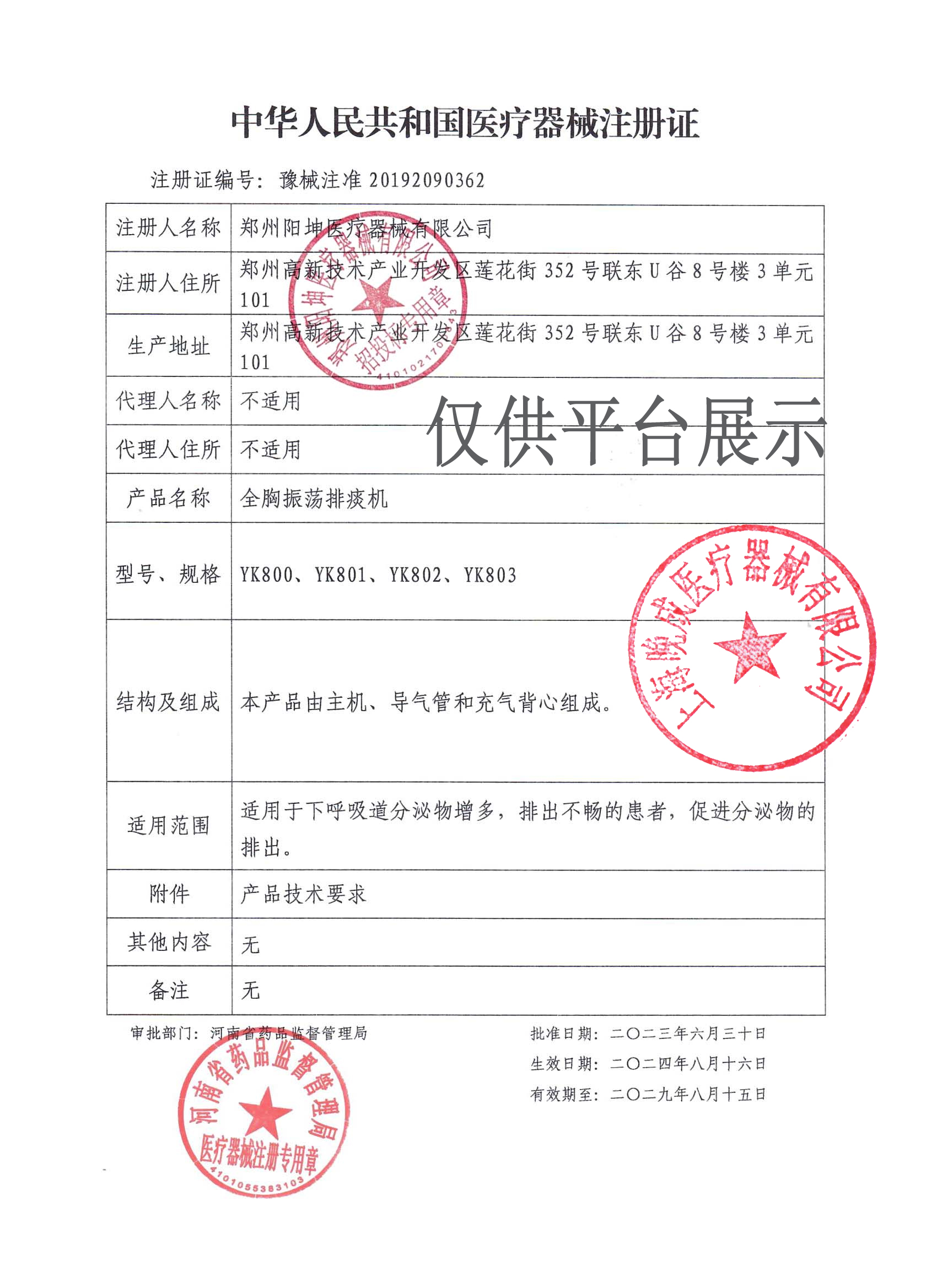 | 產(chǎn)品名稱 : | 陽坤全胸振蕩排痰機(jī)YK802 成人兒童背心式排痰 |