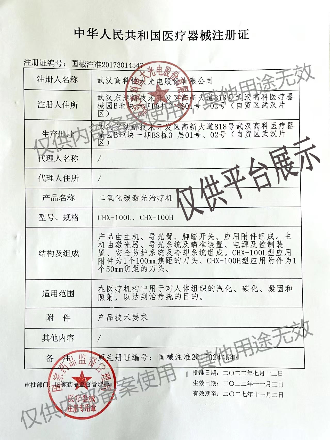 | 產(chǎn)品名稱 : | 高科恒大CHX-100L型二氧化碳激光治療機(連續(xù)激光) |